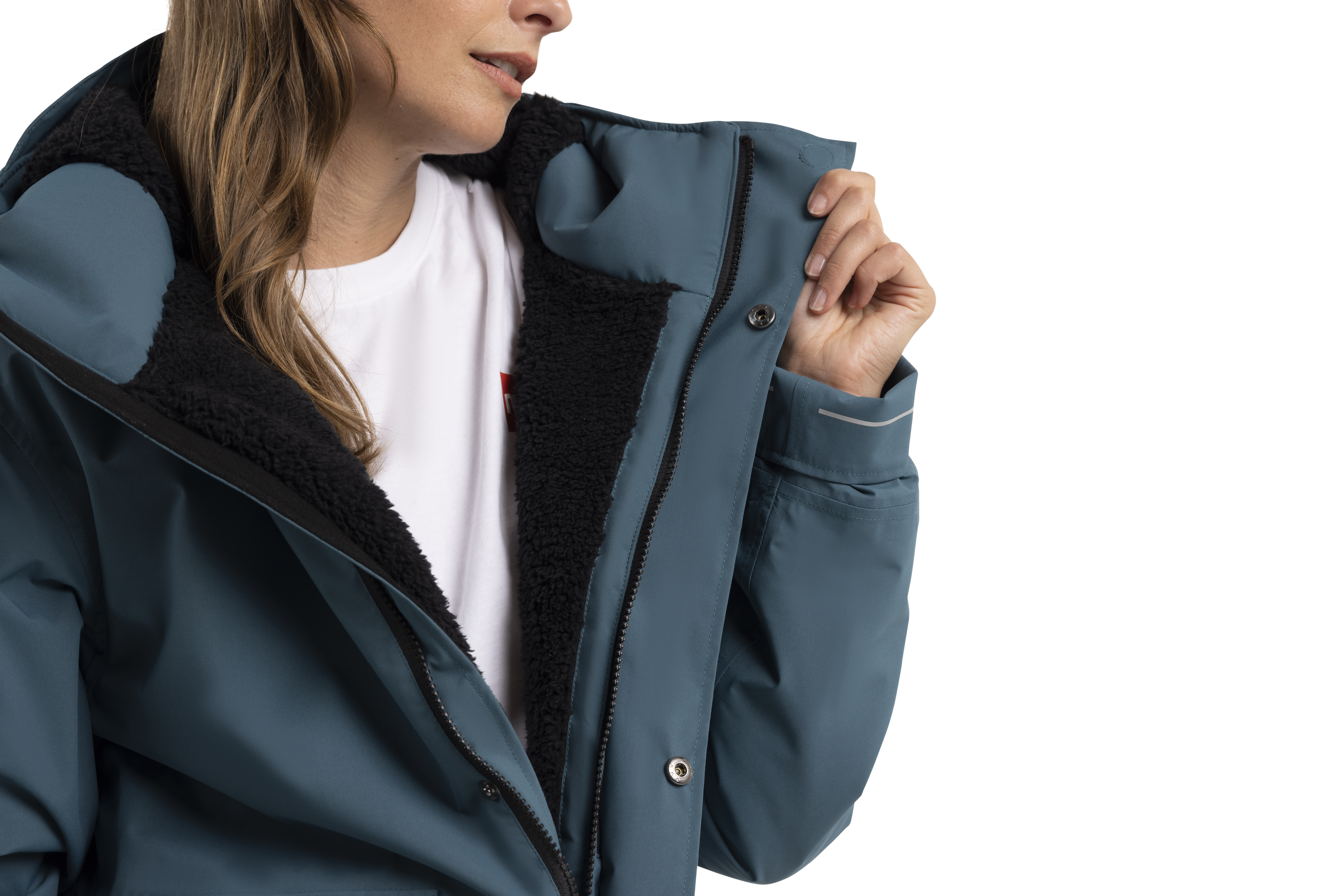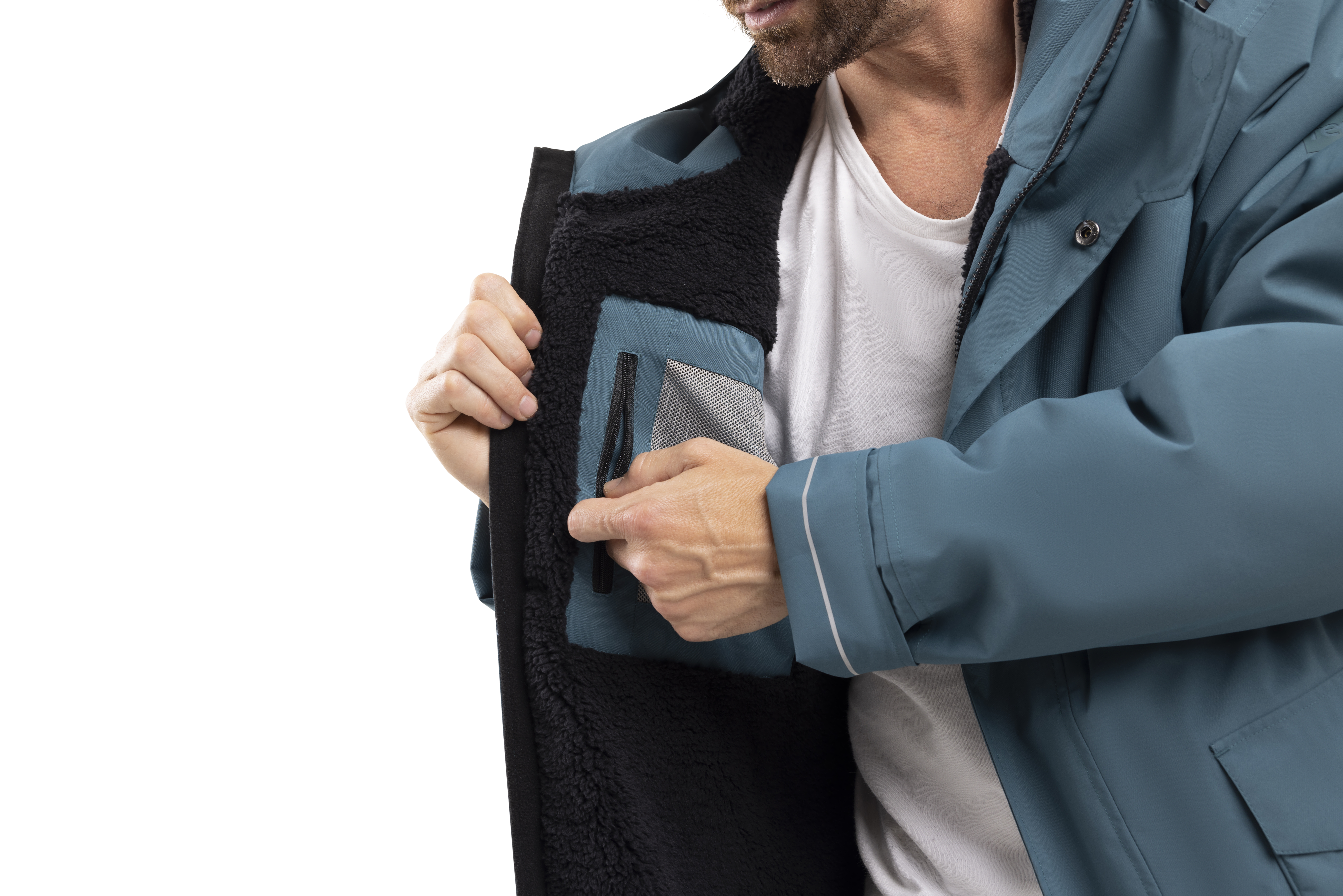 - Two-way pockets: fleece-lined hand warmers with flapped top-entry storage – plus secure internal chest pocket.