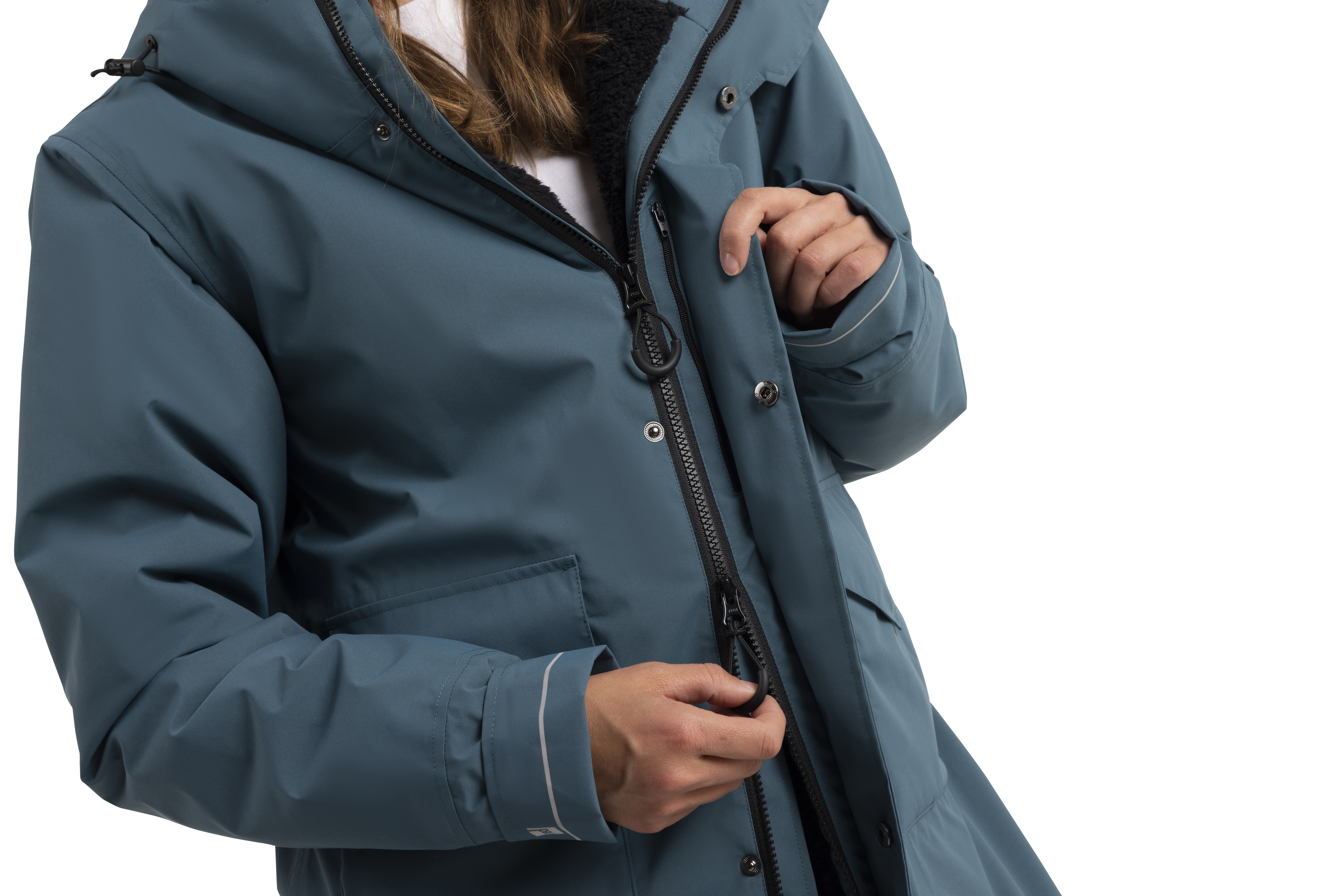 - Windproof: full-length, easy-pull zip with external storm flap and internal zip guard.