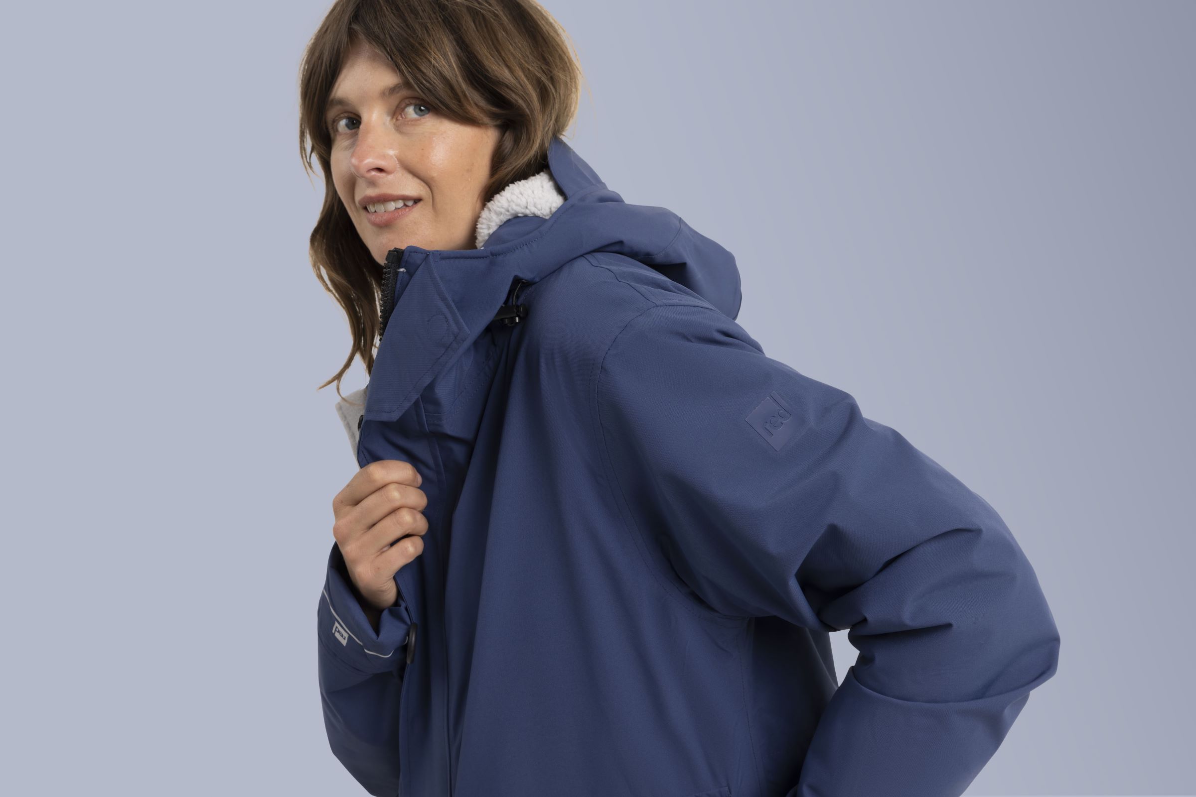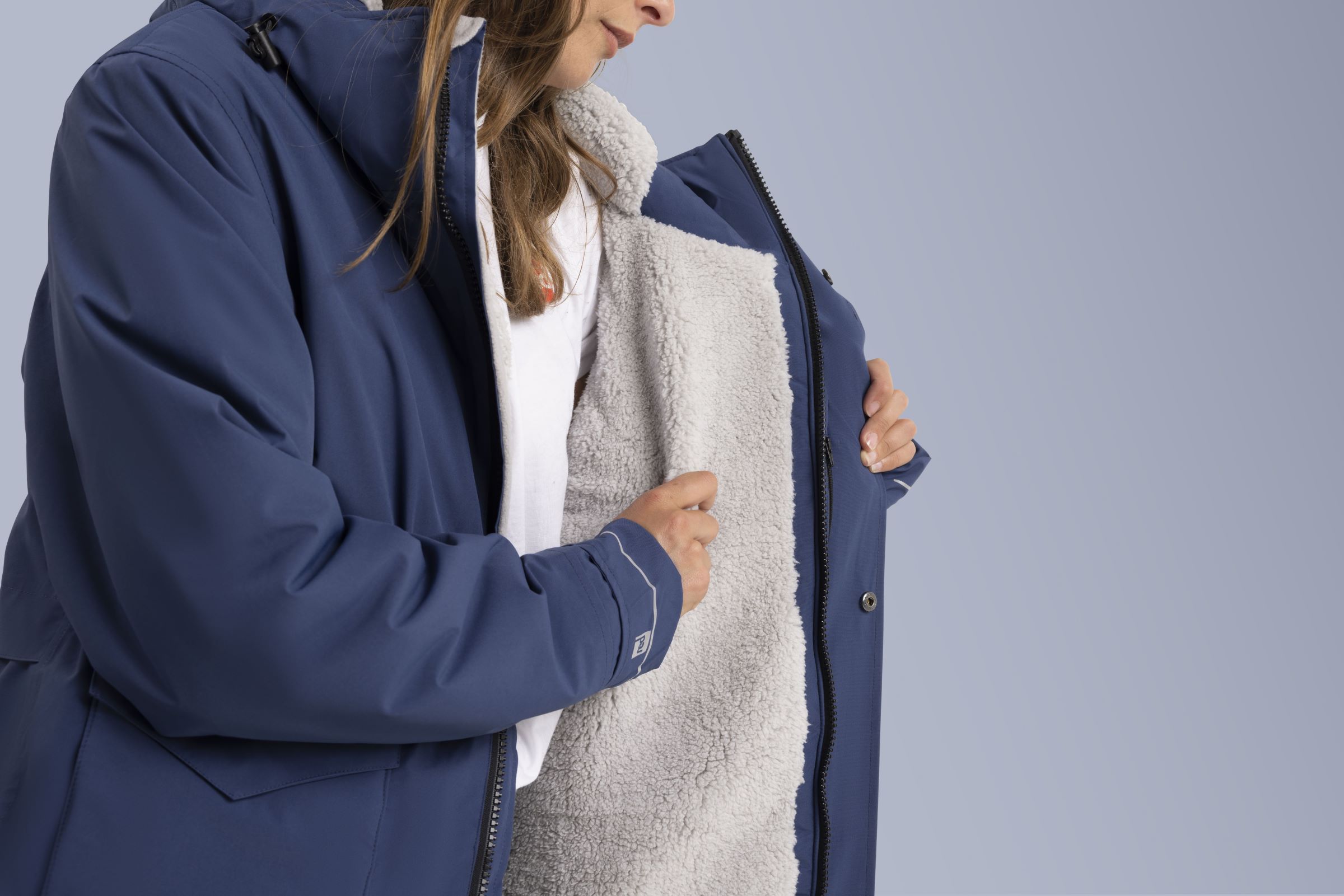 - Regulējams: pilnībā nosedzošas aproces un regulējams piedurkņu garums. Liela un pielāgojama kapuce.