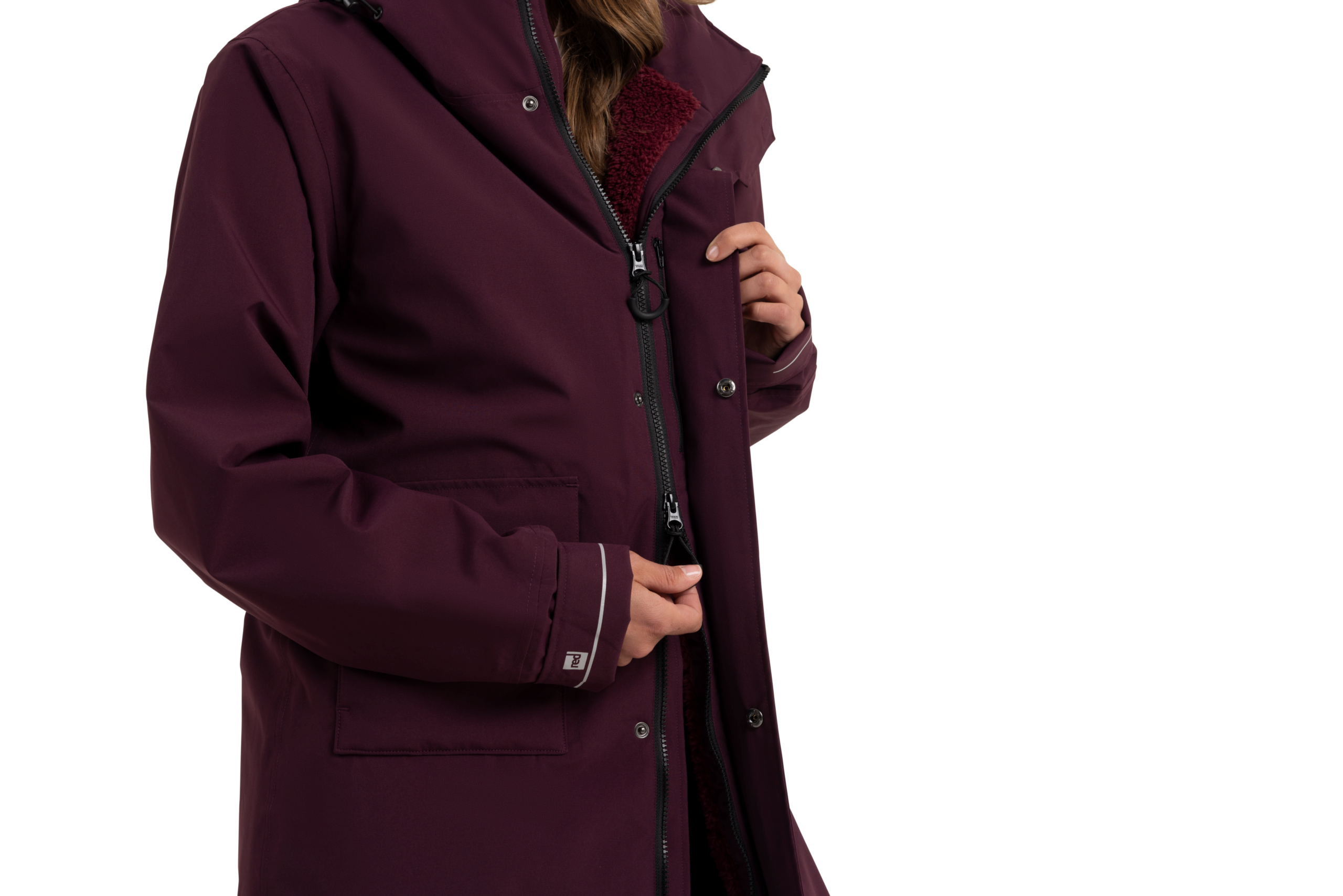 - Ērtas siltas kabatas: ar flīsu izklātas roku sildītājkabatas, mantu kabatas ar ērtu aizdari, kā arī droša krūšu kabata un iekškabata.